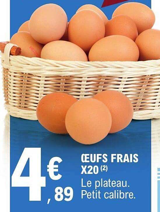 Profitez d'une excellente promotion sur un produit incontournable de votre cuisine : les œufs frais. Disponibles en plateau de 20 unités, ces œufs de petit calibre sont parfaits pour vos recettes, que ce soit pour des omelettes, des gâteaux ou même pour préparer de délicieuses crêpes. À seulement 4,89 €, cette offre est à ne pas manquer !
