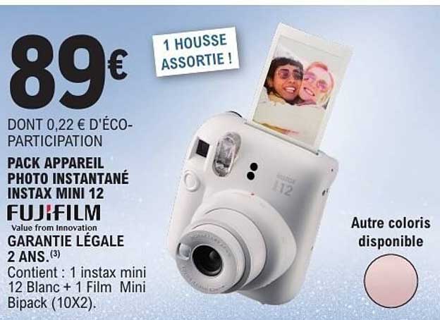 Découvrez dès maintenant la offre PACK APPAREIL PHOTO INSTANTANÉ INSTAX MINI 12 dans le catalogue de E.Leclerc. Cette offre est valable du 04/11/2025 au 15/11/2025.