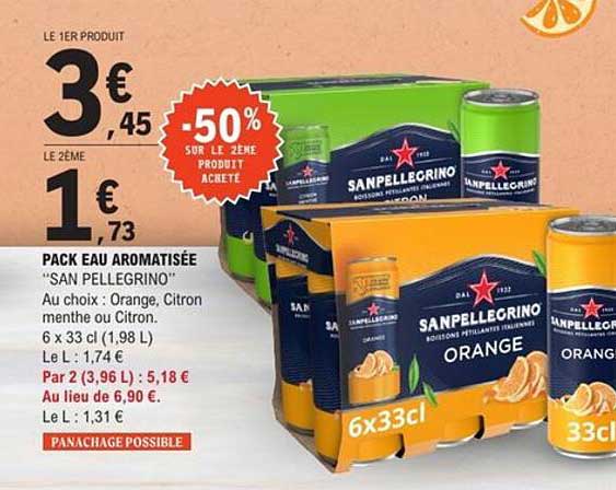 Découvrez le pack d'eau aromatisée "San Pellegrino", un choix idéal pour ceux qui souhaitent s'hydrater avec goût. Que vous soyez en train de cuisiner, de recevoir des amis ou simplement de vous détendre à la maison, ces canettes d'eau pétillante aux saveurs de citron, orange ou menthe ajoutent une touche de fraîcheur à vos moments de vie. Profitez d'une promotion exceptionnelle, valable du 27 octobre au 1er novembre 2025, pour vous faire plaisir sans culpabilité !