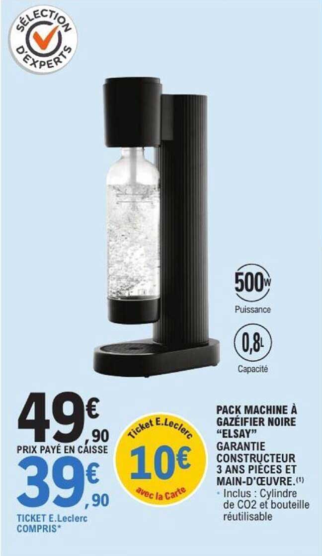 Offre de Pack Machine À Gazéifier Noire "Elsay" chez E.Leclerc