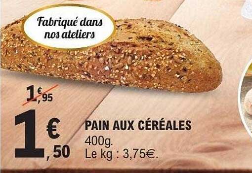 Profitez de ce pain aux céréales à seulement 1,50€, au lieu du prix habituel de 1,95€. Une belle économie de 0,45€ ! Cet offre est parfaite pour faire le plein de bon goût sans faire trop de frais.