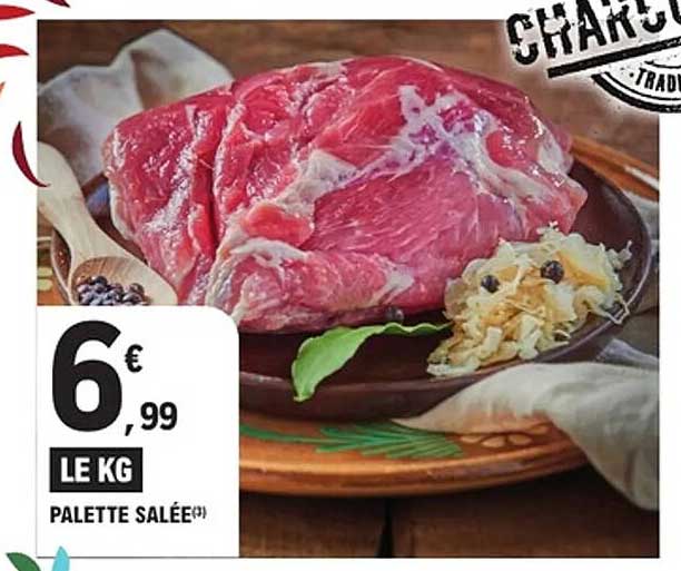 Découvrez notre merveilleuse palette salée à seulement 6,99 € le kg ! Ce morceau de viande savoureux est idéal pour préparer des plats réconfortants et fait partie des incontournables de votre cuisine. Que ce soit pour des ragoûts, des plats mijotés ou des grillades, cette viande saura séduire vos convives à coup sûr.