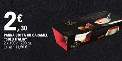 Ne manquez pas l'occasion de savourer la délicieuse panna cotta au caramel de la marque Solo Italia ! Ce dessert crémeux et onctueux est parfait pour clôturer un repas sur une note sucrée. Avec un prix exceptionnel de seulement 2,30 € pour deux portions, c'est une offre à ne pas rater ! Disponible entre le 22 et le 26 avril 2025, elle promet de ravir toutes les papilles.