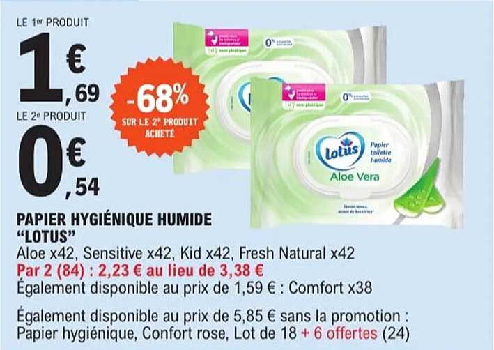 Découvrez l'offre de Papier Hygiénique Humide "Lotus" chez E.Leclerc! Cette offre fantastique est maintenant disponible dans le nouveau catalogue de E.Leclerc. Profitez de cette occasion et économisez considérablement sur votre achat.