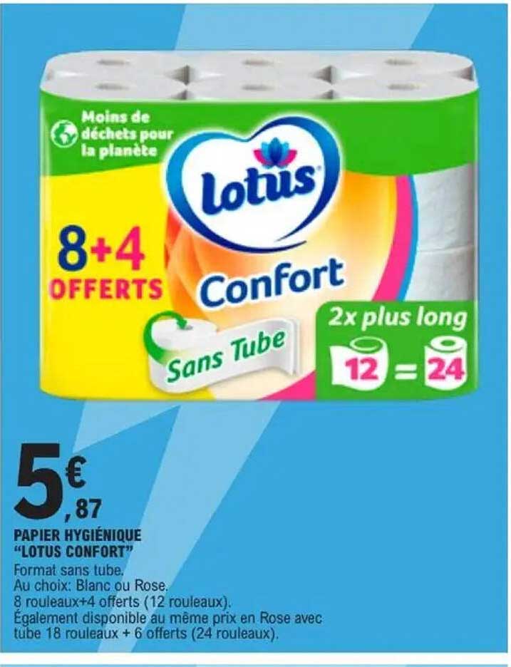 Découvrez l'offre de Papier Hygiénique "Lotus Confort" chez E.Leclerc! Cette offre fantastique est maintenant disponible dans le nouveau catalogue de E.Leclerc. Profitez de cette occasion et économisez considérablement sur votre achat.