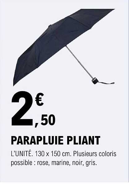 Découvrez dès maintenant la offre PARAPLUIE PLIANT dans le catalogue de E.Leclerc. Cette offre est valable du 02/09/2025 au 13/09/2025.