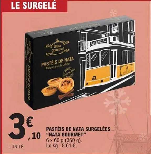 Si vous êtes à la recherche d'une douceur délicieuse et typique du Portugal, ne manquez pas l'incroyable offre de E.Leclerc sur les Pastéis de Nata surgelés "Nata Gourmet". Disponible du 7 au 18 octobre 2025, cette offre vous permet de savourer ces petites merveilles sucrées à un prix très attractif.