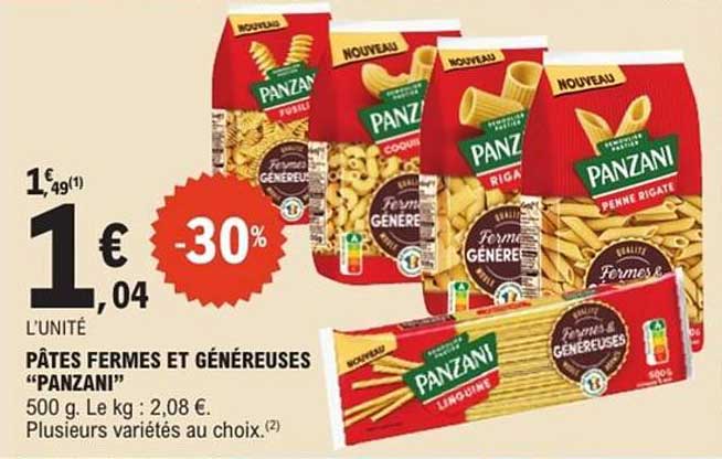 Découvrez dès maintenant la offre PÂTES FERMES ET GÉNÉREUSES “PANZANI” dans le catalogue de E.Leclerc. Cette offre est valable du 03/06/2025 au 14/06/2025.