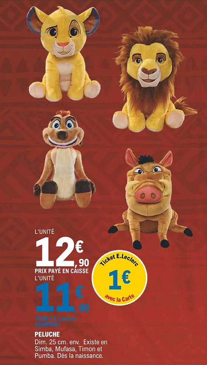 Découvrez l'offre de Peluche chez E.Leclerc! Cette offre fantastique est maintenant disponible dans le nouveau catalogue de E.Leclerc. Profitez de cette occasion et économisez considérablement sur votre achat.