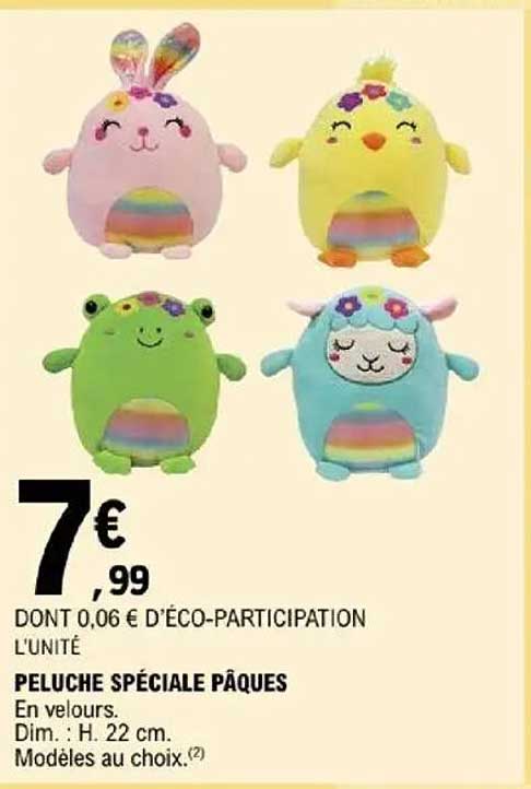 Découvrez dès maintenant la offre PELUCHE SPÉCIALE PÂQUES dans le catalogue de E.Leclerc. Cette offre est valable du 08/04/2025 au 19/04/2025.