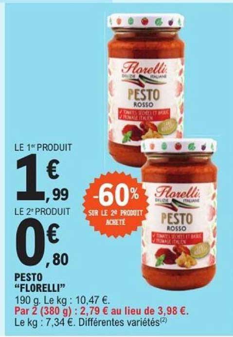Découvrez dès maintenant la offre PESTO "FLORELLI" dans le catalogue de E.Leclerc. Cette offre est valable du 22/10/2024 au 02/11/2024.