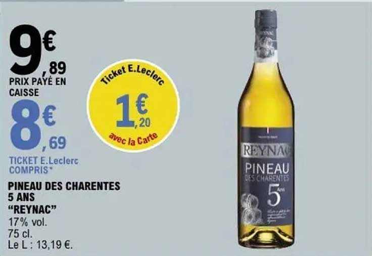 Découvrez l'offre de Pineau Des Charentes 5 Ans "Reynac" chez E.Leclerc! Cette offre fantastique est maintenant disponible dans le nouveau catalogue de E.Leclerc. Profitez de cette occasion et économisez considérablement sur votre achat.
