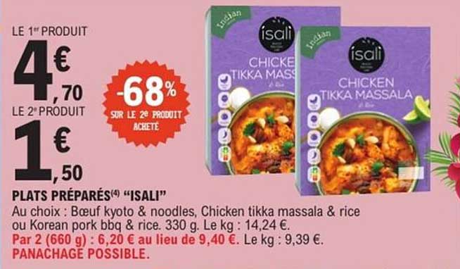 Découvrez une promotion exceptionnelle sur les plats préparés ISALI, alliant gourmandise et praticité. Du 3 au 14 juin 2025, savourez des plats variés comme le Chicken Tikka Massala, le Bœuf Kyoto, et bien d'autres, à des prix défiant toute concurrence. Ne manquez pas cette occasion de régaler vos papilles tout en faisant des économies !