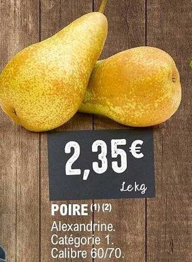 Vous cherchez un fruit savoureux et frais ? La poire Alexandrine est le choix parfait ! Disponible au prix exceptionnel de 2,35€ le kg, cette offre est valable du 4 au 16 novembre 2025. C'est l'occasion rêvée de se faire plaisir avec un fruit juteux qui apportera une touche sucrée à vos plats ou à vos collations.