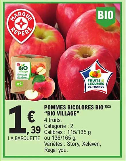 Découvrez dès maintenant la offre POMMES BICOLORES BIO "BIO VILLAGE" dans le catalogue de E.Leclerc. Cette offre est valable du 01/04/2025 au 12/04/2025.