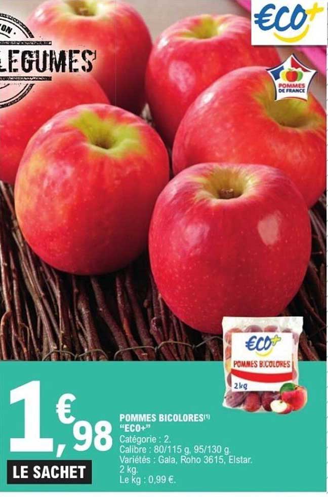 Vous cherchez des pommes savoureuses à un prix imbattable ? Ne manquez pas l'offre sur les pommes bicolores « ECO+ » disponibles dans votre magasin E.Leclerc. Ces pommes, idéales pour vos collations ou vos recettes, sont vendues en sachet de 2 kg pour seulement 1,98 €. Profitez de la qualité et du goût à petit prix !