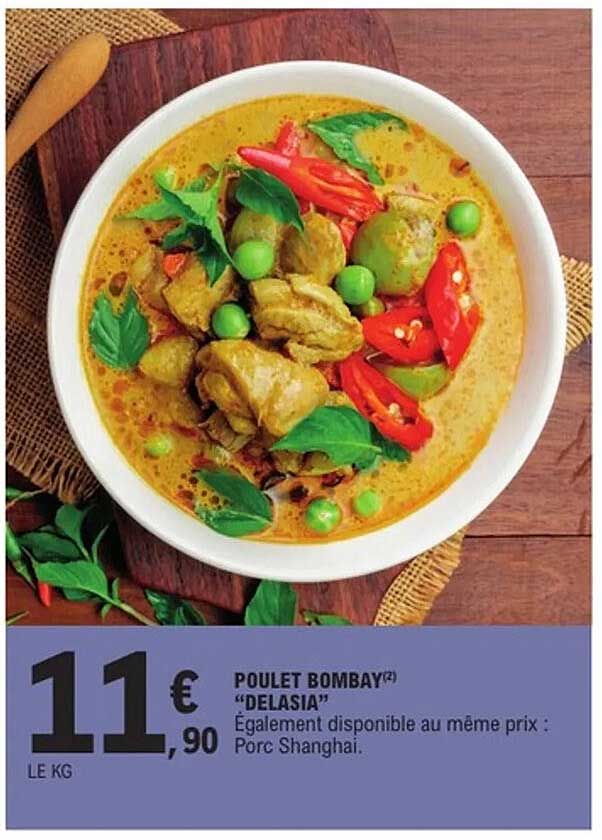 Découvrez dès maintenant la offre POULET BOMBAY "DELASIA" dans le catalogue de E.Leclerc. Cette offre est valable du 30/09/2025 au 11/10/2025.
