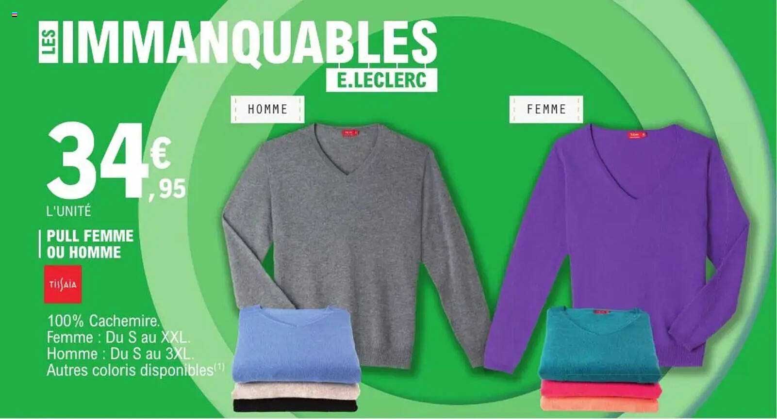 Découvrez la superbe offre de Pull Femme Ou Homme dans le nouveau catalogue de E.Leclerc. En plus de cette offre, vous trouverez de nombreuses autres réductions attrayantes. Vous pouvez facilement commander le Pull Femme Ou Homme en ligne via le site web de E.Leclerc ou l'acheter dans un magasin près de chez vous.