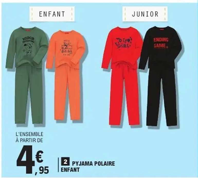 Découvrez l'offre de Pyjama Polaire Enfant chez E.Leclerc! Cette offre fantastique est maintenant disponible dans le nouveau catalogue de E.Leclerc. Profitez de cette occasion et économisez considérablement sur votre achat.