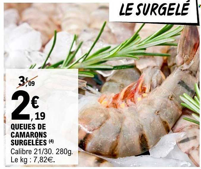 Au lieu de 3,09 €, vous pouvez profiter de cette promotion et acheter vos queues de camarons surgelées pour seulement 2,19 €. Cela représente une économie significative, ce qui en fait une offre très avantageuse pour vos courses !