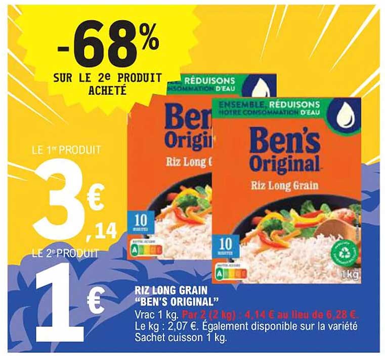 Découvrez l'offre de Riz Long Grain "Ben's Original" chez E.Leclerc! Cette offre fantastique est maintenant disponible dans le nouveau catalogue de E.Leclerc. Profitez de cette occasion et économisez considérablement sur votre achat.