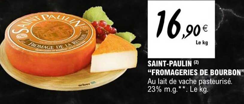 Ce fromage provient des Fromageries de Bourbon, garantissant ainsi un savoir-faire traditionnel. En plus de son goût inégalé, le Saint-Paulun est présenté sous forme de meule, facilitant son utilisation. Sa couleur rosée et sa texture crémeuse font de lui un élément visuel attrayant sur n'importe quel plateau.