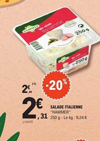Découvrez dès maintenant la offre SALADE ITALIENNE "HAMMER" dans le catalogue de E.Leclerc. Cette offre est valable du 27/10/2025 au 01/11/2025.