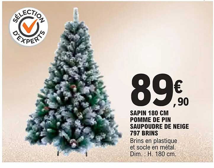 Découvrez l'offre de Sapin 180 Cm Pomme De Pin Saupoudre De Neige 797 Brins chez E.Leclerc! Cette offre fantastique est maintenant disponible dans le nouveau catalogue de E.Leclerc. Profitez de cette occasion et économisez considérablement sur votre achat.