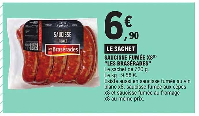 Offre de Saucisse Fumée X8 "Les Brasarades" chez E.Leclerc