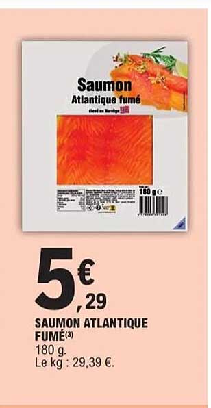 Découvrez l'offre de Saumon Atlantique Fumé chez E.Leclerc! Cette offre fantastique est maintenant disponible dans le nouveau catalogue de E.Leclerc. Profitez de cette occasion et économisez considérablement sur votre achat.