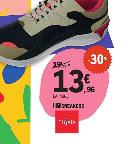 Découvrez l'offre de Sneakers Tissaia chez E.Leclerc! Cette offre fantastique est maintenant disponible dans le nouveau catalogue de E.Leclerc. Profitez de cette occasion et économisez considérablement sur votre achat.