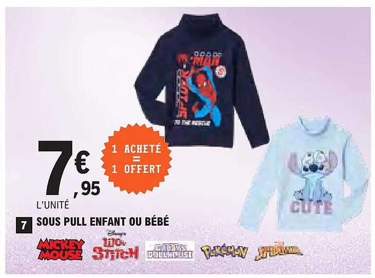 Offre de Sous Pull Enfant Ou Bébé chez E.Leclerc