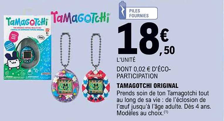 Découvrez l'offre de Tamagotchi Original chez E.Leclerc! Cette offre fantastique est maintenant disponible dans le nouveau catalogue de E.Leclerc. Profitez de cette occasion et économisez considérablement sur votre achat.