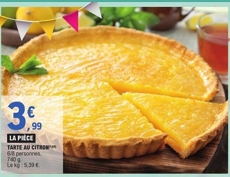 Actuellement proposée à seulement 3,99 €, la tarte au citron est une offre à ne pas rater. Habituellement, vous la trouviez à un prix bien plus élevé, ce qui fait de cette promotion une excellente affaire. Profitez de cette réduction pour égayer votre table sans vous ruiner !
