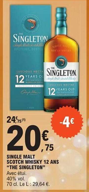 Découvrez l'offre de The Singleton Single Malt Scotch Whisky 12 Ans "The Singleton" chez E.Leclerc! Cette offre fantastique est maintenant disponible dans le nouveau catalogue de E.Leclerc. Profitez de cette occasion et économisez considérablement sur votre achat.