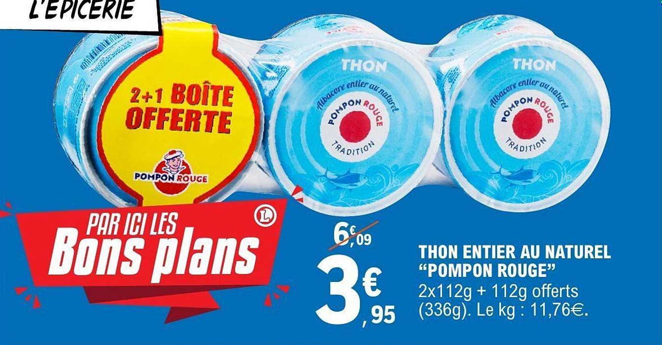 Découvrez dès maintenant la offre THON ENTIER AU NATUREL "POMPON ROUGE" dans le catalogue de E.Leclerc. Cette offre est valable du 07/10/2025 au 19/10/2025.