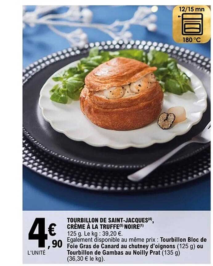 Découvrez dès maintenant la offre TOURBILLON DE SAINT-JACQUES(4)*, CRÈME À LA TRUFFE(®) NOIRE(1) dans le catalogue de E.Leclerc. Cette offre est valable du 18/11/2025 au 31/12/2025.