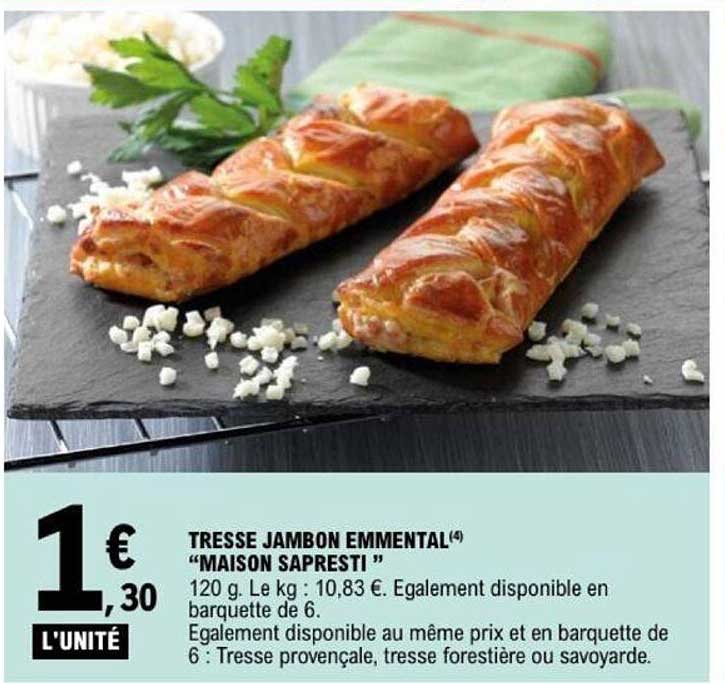Découvrez l'offre de Tresse Jambon Emmental "Maison Sapresti" chez E.Leclerc! Cette offre fantastique est maintenant disponible dans le nouveau catalogue de E.Leclerc. Profitez de cette occasion et économisez considérablement sur votre achat.