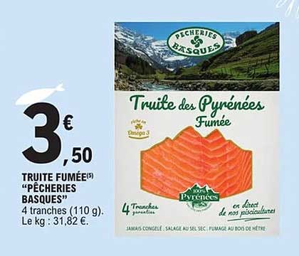 Découvrez dès maintenant la offre Truite fumée "Pêcheries Basques" dans le catalogue de E.Leclerc. Cette offre est valable du 04/11/2025 au 08/11/2025.