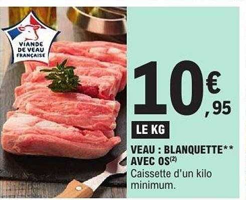 Découvrez une offre irrésistible sur la blanquette de veau avec os, fraîche et savoureuse. À seulement 10,95 € le kilogramme, vous avez l'opportunité de régaler votre famille avec un plat traditionnel et réconfortant. Cette promotion est valable jusqu'au 11 octobre 2025, alors ne manquez pas votre chance !