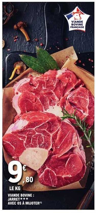 Découvrez notre offre exceptionnelle sur le jarret de viande bovine, idéal pour des plats mijotés savoureux. Avec un prix attractif de seulement 9,80€ le kilo, c'est l'occasion parfaite de régaler toute la famille avec des recettes réconfortantes.