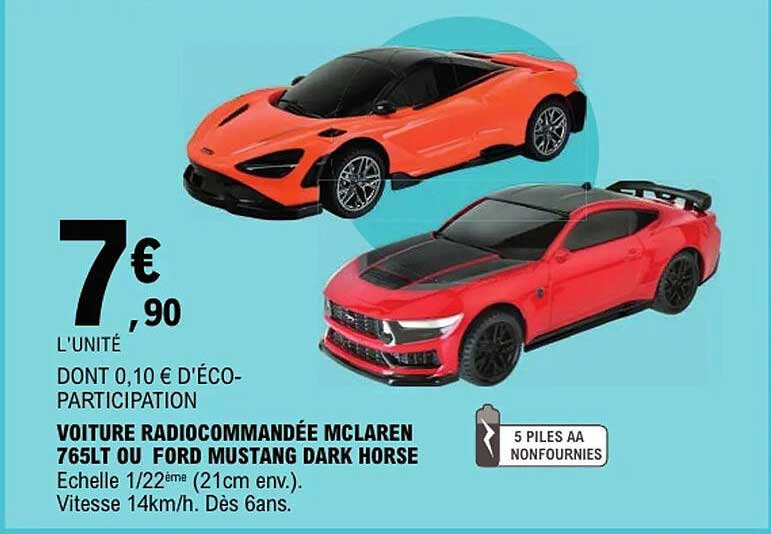 Offre de Voiture Radiocommandée Mclaren 765Lt Ou Ford Mustang Dark Horse chez E.Leclerc
