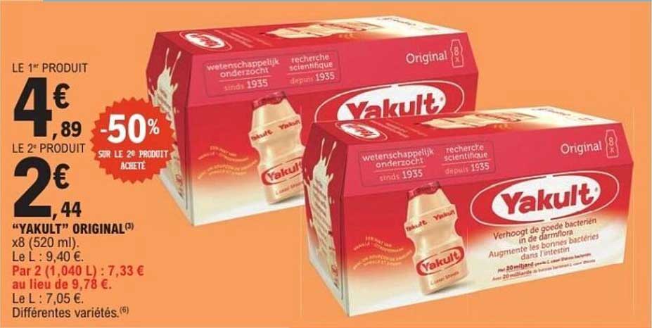 Découvrez l'offre exceptionnelle sur le célèbre « YAKULT » original, parfait pour prendre soin de votre santé intestinale. Profitez de 50 % de réduction sur le deuxième produit acheté, une occasion en or pour enrichir votre quotidien avec ce probiotique reconnu.