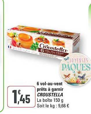 Découvrez dès maintenant la offre 6 vol-au-vent prêts à garnir CROUSTELLA dans le catalogue de G20. Cette offre est valable du 09/04/2025 au 20/04/2025.