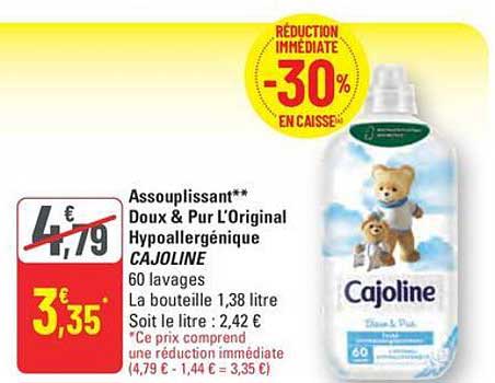 Découvrez l'offre de Assouplissant Doux & Pur L'original Hypoallergénique Cajoline chez G20! Cette offre fantastique est maintenant disponible dans le nouveau catalogue de G20. Profitez de cette occasion et économisez considérablement sur votre achat.