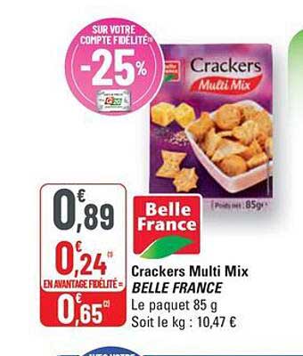 Découvrez l'offre de Crackers Multi Mix chez G20! Cette offre fantastique est maintenant disponible dans le nouveau catalogue de G20. Profitez de cette occasion et économisez considérablement sur votre achat.
