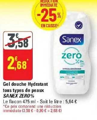 Découvrez une excellente opportunité pour prendre soin de votre peau avec le gel douche hydratant Sanex ZERO%. Profitez d'une réduction exceptionnelle qui allie qualité et prix abordable. À seulement 2,68€ au lieu de 3,58€, c'est le moment idéal pour faire le plein de produits d'hygiène qui respectent toutes les peaux.