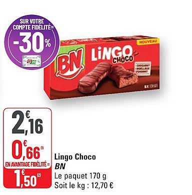 Découvrez la superbe offre de Lingo Choco dans le nouveau catalogue de G20. En plus de cette offre, vous trouverez de nombreuses autres réductions attrayantes. Vous pouvez facilement commander le Lingo Choco en ligne via le site web de G20 ou l'acheter dans un magasin près de chez vous.