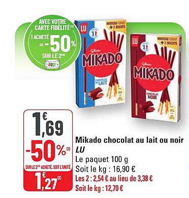 Découvrez l'offre de Mikado Chocolat Au Lait Ou Noir chez G20! Cette offre fantastique est maintenant disponible dans le nouveau catalogue de G20. Profitez de cette occasion et économisez considérablement sur votre achat.