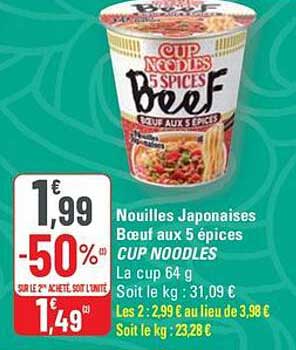 Offre de Nouilles Japonaises Boeuf Aux 5 Épices Cup Noodles chez G20